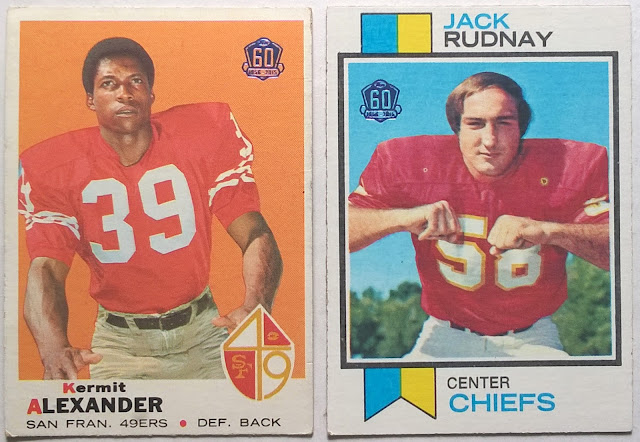 These were gotten during the 2016 spring sale, and were my first two football buybacks. I hadn't planned on trying a football frankenset, but after I came across that '69 Kermit Alexander for under a buck, I figured why not? They aren't nearly as prolific as they are on the baseball side, so it seems a little harder to find 'em on the cheap. But if Topps keeps on doing them, that problem should resolve itself within a few years.